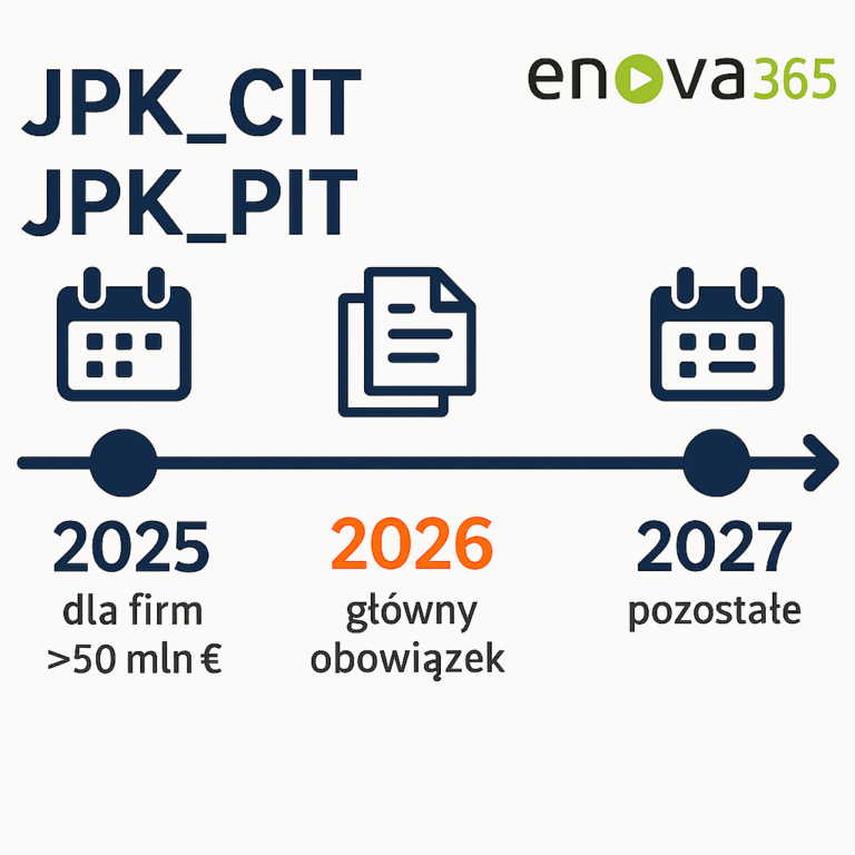 Przełom roku 2025/2026 w obszarze księgowym, to bardzo wymagający czas, ponieważ dotyczy: zakończenia roku, wdrożenia KSeF, a także jest to termin obowiązkowej sprawozdawczości JPK_CIT lub JPK_PIT. Zgodnie z obowiązującymi przepisami, od 1 stycznia 2026 r. nowy obowiązek obejmie większość podatników. Obsługa JPK CIT jest dostępna w programie enova365 od wersji 2410